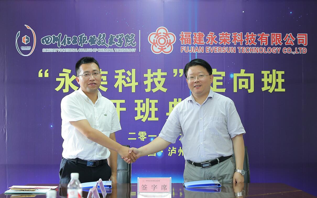 校企合作是学院历来非常重视的一项工作,订单式人才培养模式也是学院一直推崇的模式。近年来,学院已经先后与泸州老窖股份有限公司、云天化集团公司、四川天华股份有限公司、华润燃气集团、福建天辰耀隆新材料有限公司、眉山金象股份有限公司、重庆博腾药业、四川海大集团、川汽野马汽车、成都铁路局、成都京东方光电科技有限公司、成都金发科技新材料有限公司、成都美中美涂料有限公司、宜宾天原集团、四川精细化工设计研究院、福建永荣科技有限公司、福建申远新材料有限公司、浙江卫星石化股份有限公司、浙江巴陵恒逸有限公司等二十多家企业联合开办了40多个定向班。