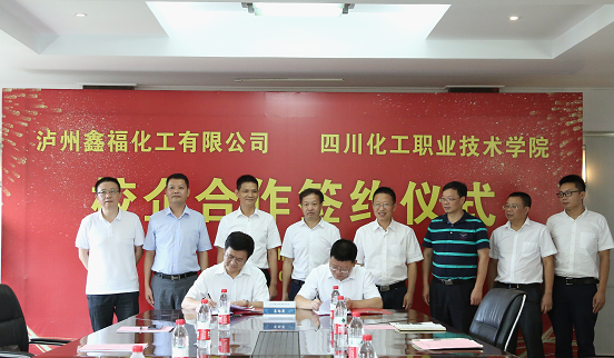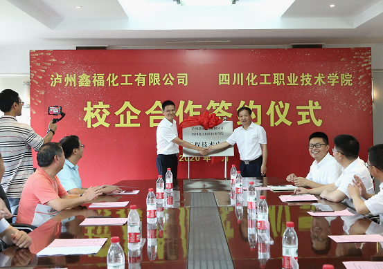 为进一步贯彻落实《国家职业教育改革实施方案》,深化产教融合、校企合作,充分发挥校企双方在人才培养、技术研发、科技成果转化、文化传承等方面的优势,促进双方优势互补、资源共享、互利互惠、共同发展,在这“蝉噪林逾静,鸟鸣山更幽”的七月,在全国人民抗击新冠疫情取得阶段性成功之际,在我校如火如荼地进行省级优质高职学院建设之际,我校与泸州鑫福化工有限公司校企合作签约仪式于2020年7月7日下午在四川化工职业技术学院隆重举行。四川鑫福高速投资有限公司董事长赖大权、泸州鑫福化工有限公司董事长赖大春、公司党委书记、总经理聂勇、公司副总经理兼总工程师李万清、公司安全生产技术部部长王文俊,四川化工职业技术学院党委书记刘志勇、党委委员、副院长(主持行政工作)文申柳、副院长蒲开伦、参加了签约仪式。签约仪式由学校党委委员、副院长王志斌主持。