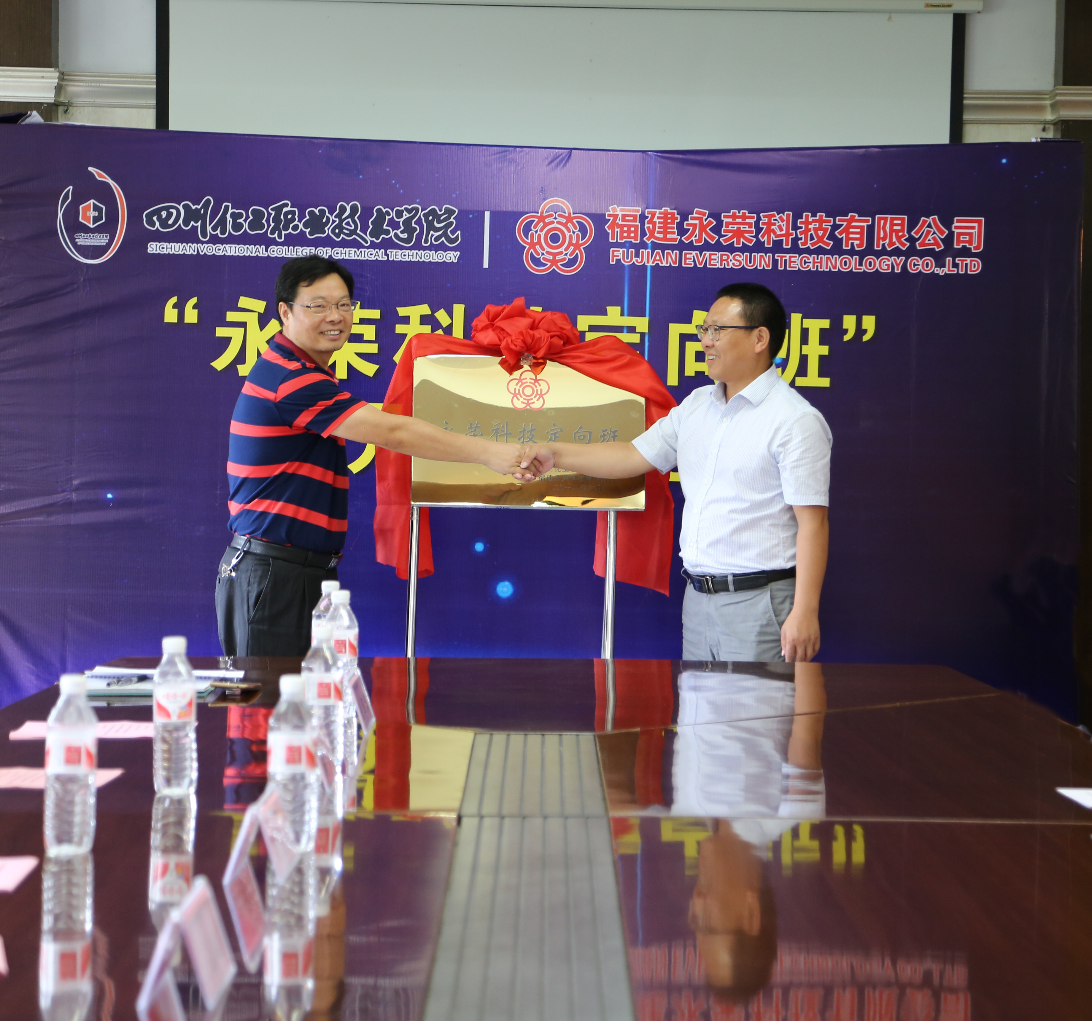 仪式中,王志斌副院长、刘期敏副总经理共同为“永荣科技定向班”揭牌,参会人员热烈的掌声将开班仪式推向了高潮。