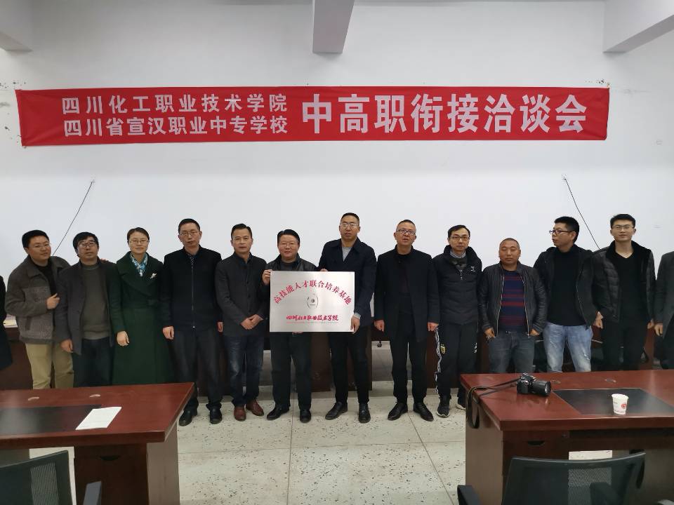 3月12日下午4点,文院长一行来到了位于达州宣汉的宣汉职业技术学校进行中高职衔接活动。宣汉职校刚刚由三所中职学校合并而成,有在校生1万余名,每年均有2500余名中职学生升学,是省内规模最大的中职学校之一。在中高职衔接座谈会上,宣汉职校冉启全校长首先对文院长一行不远千里来到宣汉职校表示热烈欢迎,他向文院长一行介绍了宣汉厚重的历史文化(红军文化、巴山文化、土家文化)和经济现状,尤其谈到宣汉是煤炭、天然气、稀有金属蕴含量丰富的地区,希望和四川化院在化工类专业方面进行深度合作。他说,宣汉职校非常重视中高职衔接工作,倡导开放式办学理念,不断加强与高职学院的深度,学校要求各专业采用两个三+三的中高职及校企合作模式,即每个专业对接3个高职院校、每个专业对接三个大中型企业再联系三个中小微企业。冉校长表示,宣汉职校有举办化工类专业的历史,尤其是宣汉工业不久将向化工发展,急需化工类人才,希望得到四川化院的大力支持和帮扶。文申柳副院长在座谈中首先向宣汉职校各位领导和专业老师详细介绍了我院的历史发展沿革、学院新校区的建设情况、学校专业建设及发展情况、招生和就业工作,尤其对我院开展的中高职3+3合作模式即帮助中职学校进行新专业建设和帮扶做了详细介绍,他说,中高职深度合作适应国家和社会发展的要求,也是企业由人工操作向智能化操作转型的需求;化院将在专业建设、中高职人才培养方案衔接、师资培训、中职学生技能培训等方面与中职学校进行深度合作。