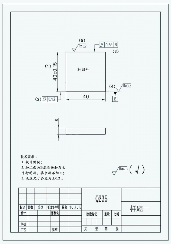 (3)毛坯材料:Q235钢板,厚度8mm;