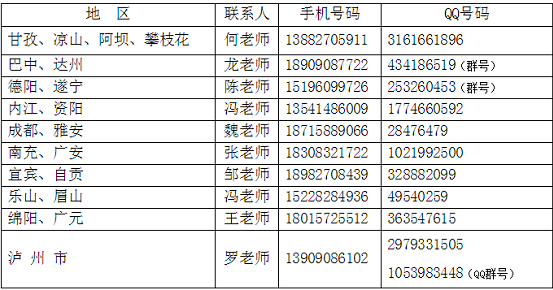 四川化院负责各地市州招生宣传老师联系及咨询方式如下: